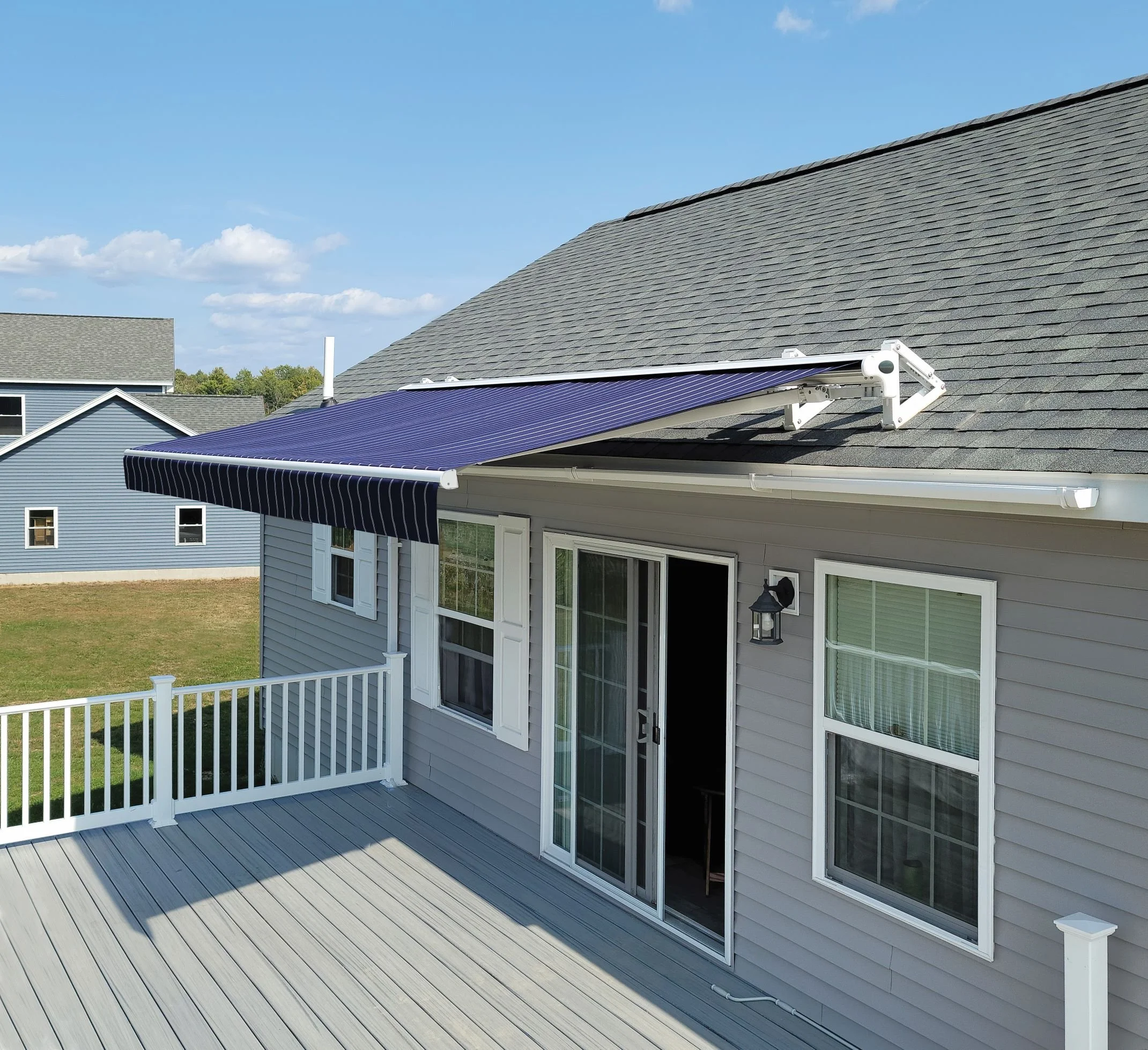 The SummerSpace Traditional 77 Retractable Patio Awning will help to make your deck or patio more comfortable on hot summer days. Not only do awnings protect your home and it’s furnishings, but most importantly yourself and your family from the harmful UV rays of the sun. They also can help you save on energy costs! Studies have shown that homeowners who install fabric awnings can reduce solar heat gain by up to 77% and lower the inside temperature of their home by up to 15 degrees.